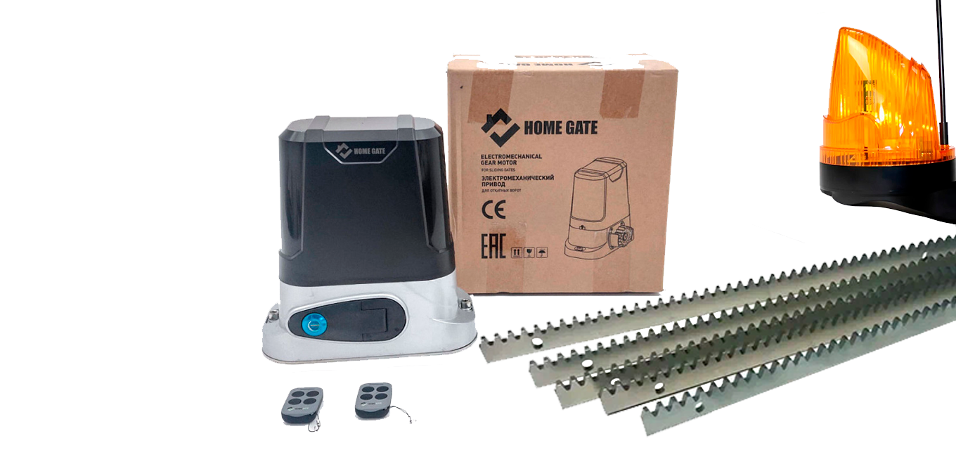 Комплект электропривода для откатных ворот HOME GATE LTM 800 + рейка 5 шт + фотоэлементы + лампа